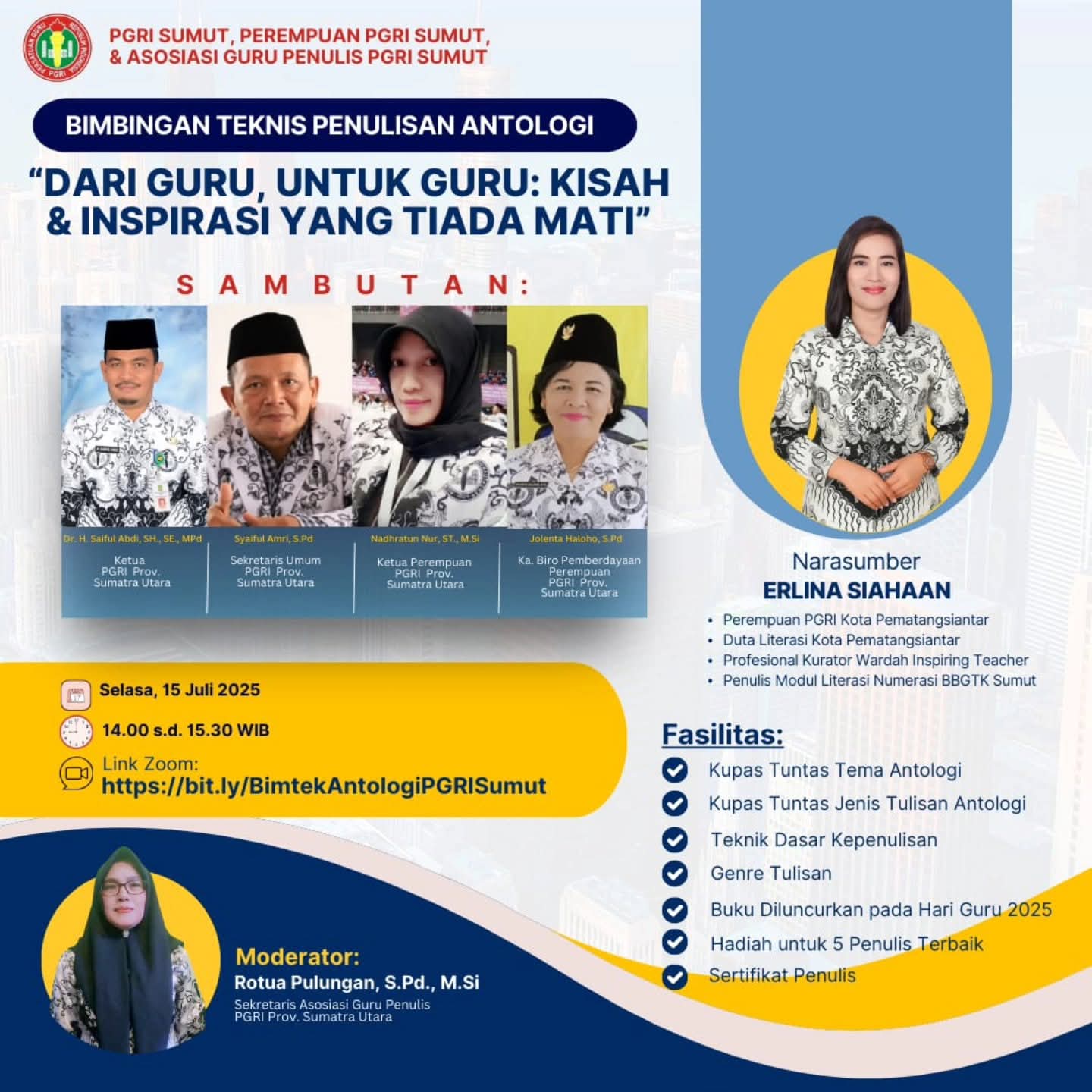 Ditempat terpisah Sekretaris PGRI Sumut Saiful Amri mengatakan bahwa Puncak Acara berupa Lounching dan Apresiasi di Hari Guru Nasional sekaligus proses penerbitan akan dilanjutkan, dengan target Launching Buku Antologi pada November 2025 bertepatan dengan perayaan Hari Guru Nasional (HGN) tahun 2025 di Provinsi Sumatera Utara.