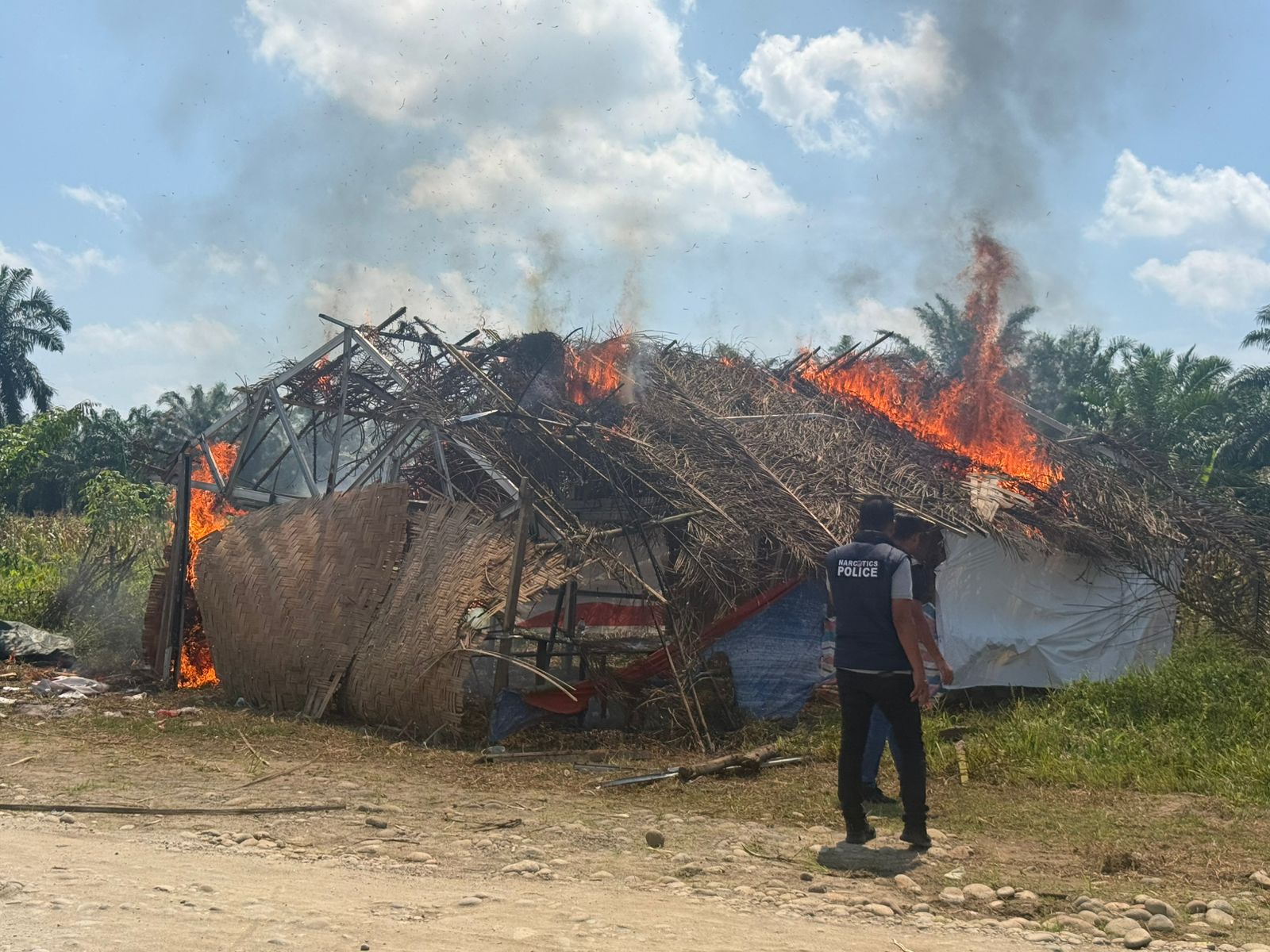 ” Kemudian personil sat narkoba melakukan pembongkaran terhadap barak narkoba, selanjutnya dimusnahkan dengan cara dibakar mengingat barak tersebut sudah berulangkali ditertibkan.