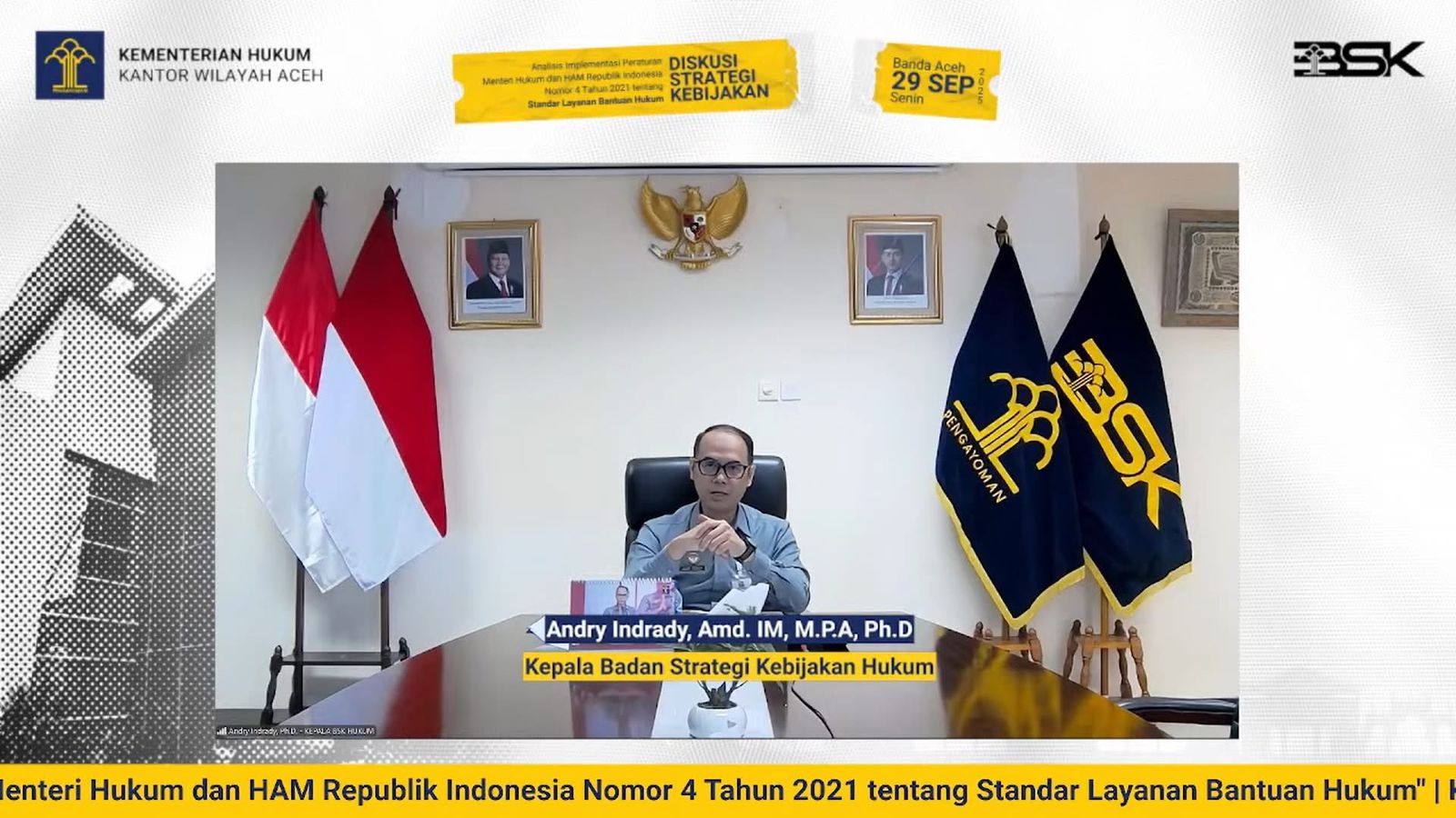 Annanews.co.id || Banda Aceh – Kepala Badan Strategi Kebijakan (BSK) Hukum Kementerian Hukum, Andry Indrady, membuka Diskusi Strategi Kebijakan (DSK) secara virtual, Senin (29/9/2025).