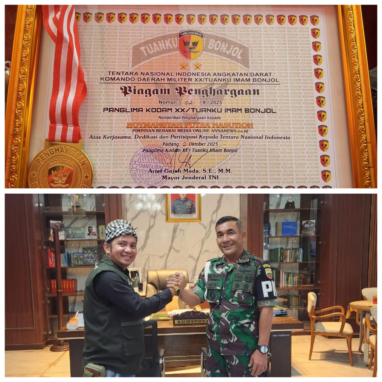 Annanews.co.id || Medan – DPW PW FRN Counter Berita TNI – Polri Provinsi Sumut yang dipimpin oleh Roy Nasution pada Selasa (21/10/2025) melakukan kunjungan silaturahmi kepada Komandan Polisi Militer Kodam I/BB Kolonel Cpm Henry Saul P. Simanjuntak S.H M.Hum bertempat kantornya Jalan Sena No. 17 Kelurahan Perintis Kecamatan Medan Timur.