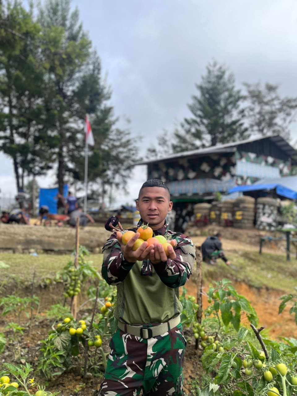 Berbekal pengetahuan pembekalan tentang pertanian sebelum berangkat tugas, personel Satgas dengan cekatan memanfaatkan lahan kosong di sekitar pos dengan menanam cabe untuk membantu kebutuhan pangan prajurit dan juga warga sekitar pos.