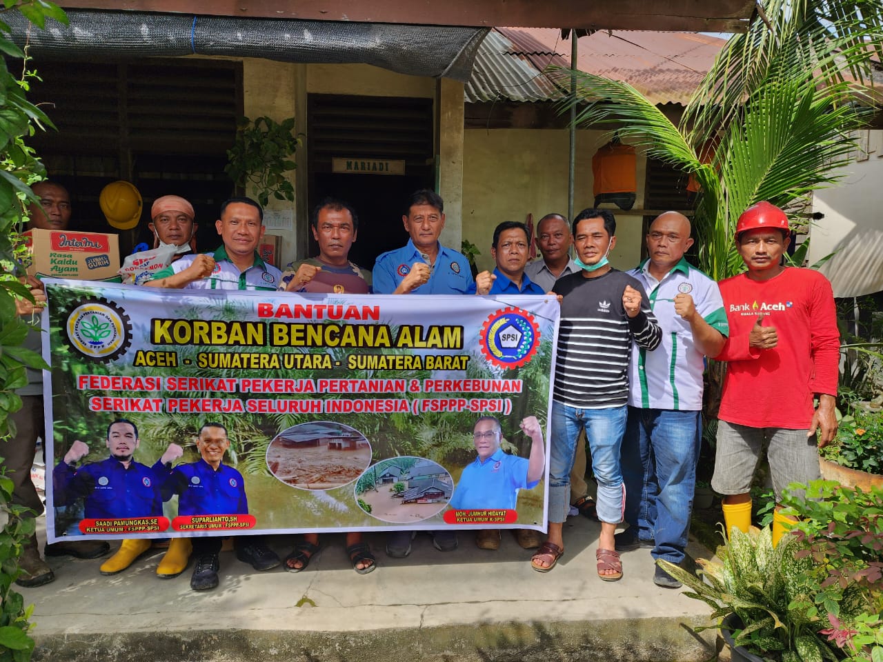 Dalam kesempatan teraebut FSP PP-SPSI Seindonesia berjibaku bersama dengan berdonasi dan memberikan bantuan berupa bahan makanan dari beras yang telah di rencanakan 1000 karung 5 Kg,Aqua 500 kotak,Intermie 500 kotak dengan tujuan lokasi pembagian bantuan Sumut,Aceh dan Sumbar.11/12