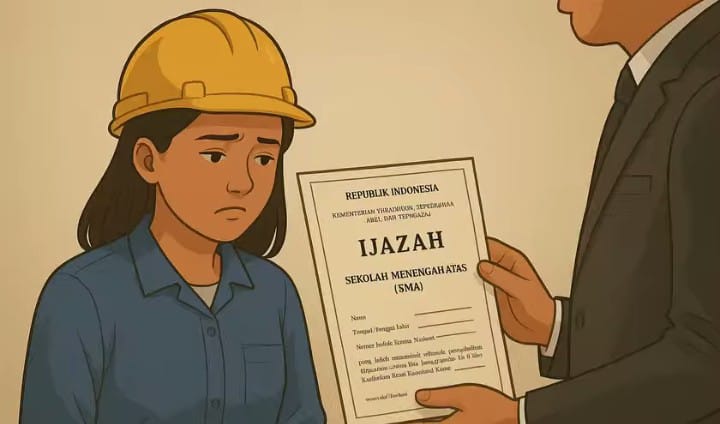 Annanews.co.id || Kota Pekalongan – Kabar Seorang perempuan muda di Kota Pekalongan harus menanggung getir setelah ijazah SMA miliknya ditahan perusahaan tempat ia bekerja selama empat tahun. Tanpa alasan yang jelas, dokumen penting tersebut tak kunjung dikembalikan meski masa kontraknya telah berakhir, Rabu.(24/9/25)
