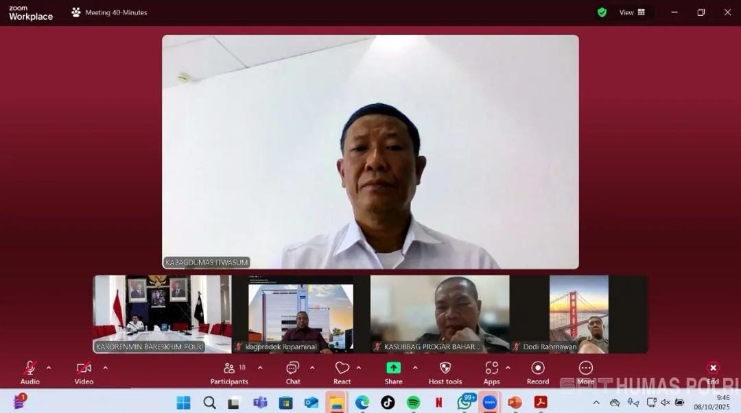 Annanews.co.id || Jakarta, — Dalam rangka mendukung pelaksanaan program 4 Quick Wins Transformasi Polri, Inspektorat Pengawasan Umum (Itwasum) Polri bersama Divisi Profesi dan Pengamanan (Divpropam) Polri melaksanakan kegiatan sosialisasi Whistle Blower System (WBS) dan SP4N-LAPOR! secara daring melalui zoom meeting pada Rabu, 8 Oktober 2025 pukul 09.00 WIB.