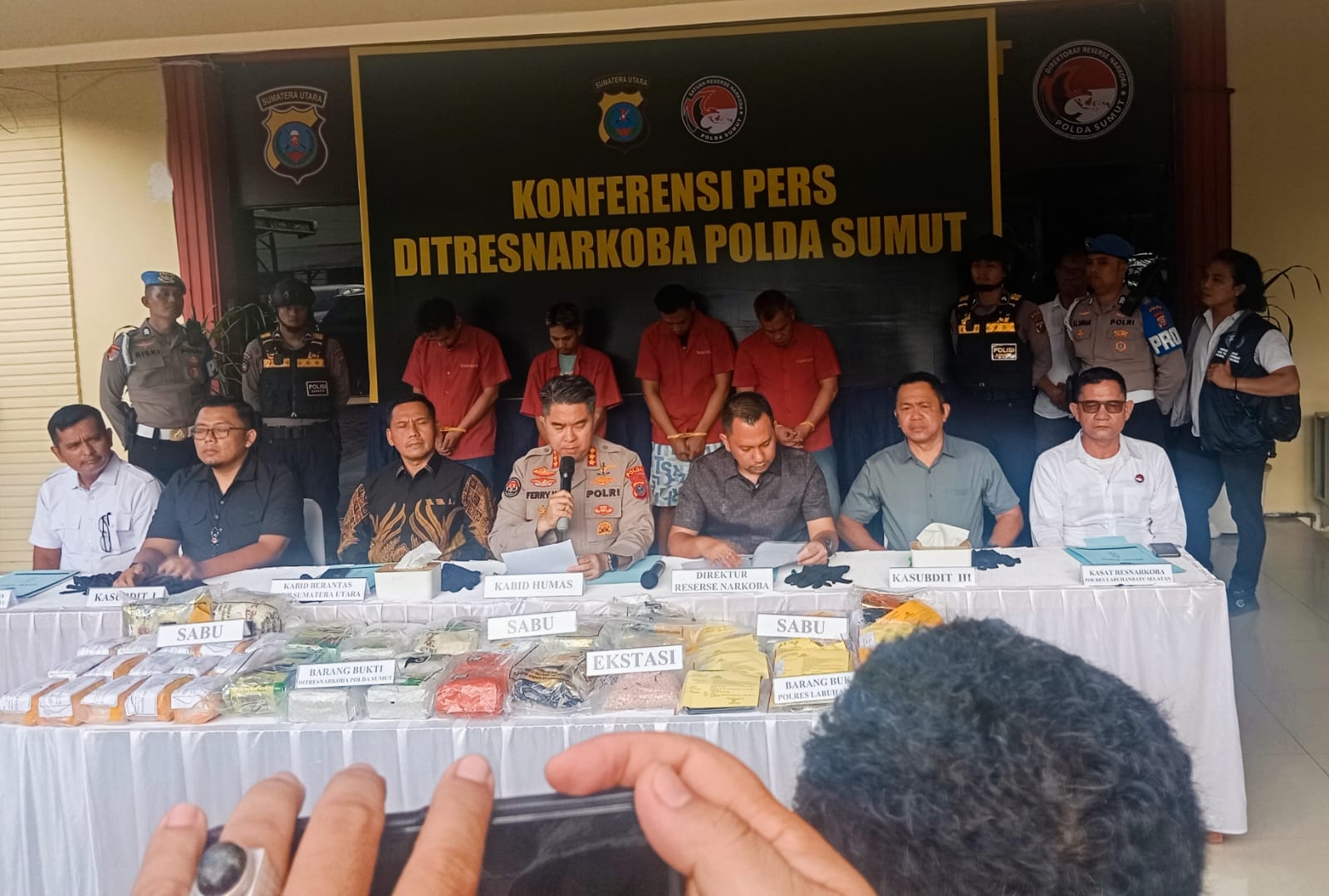 Annanews.co.id || Medan — Entah apa sebab, Direktorat Reserse Narkoba Poldasu dibawah pimpinan Kombes Pol Jean Calvin Simanjuntak selalu saja memperlihatkan keberhasilan yang sudah – sudah. Meskipun telah beberapa kali di ekspose, Tapi entah mengapa Calvin Simanjuntak selalu saja memajangkan barang bukti narkiba jenis sabu dan obat – obatan terlarang hasil tangkapan yang lalu – lalu untuk terus dipublikasikan.