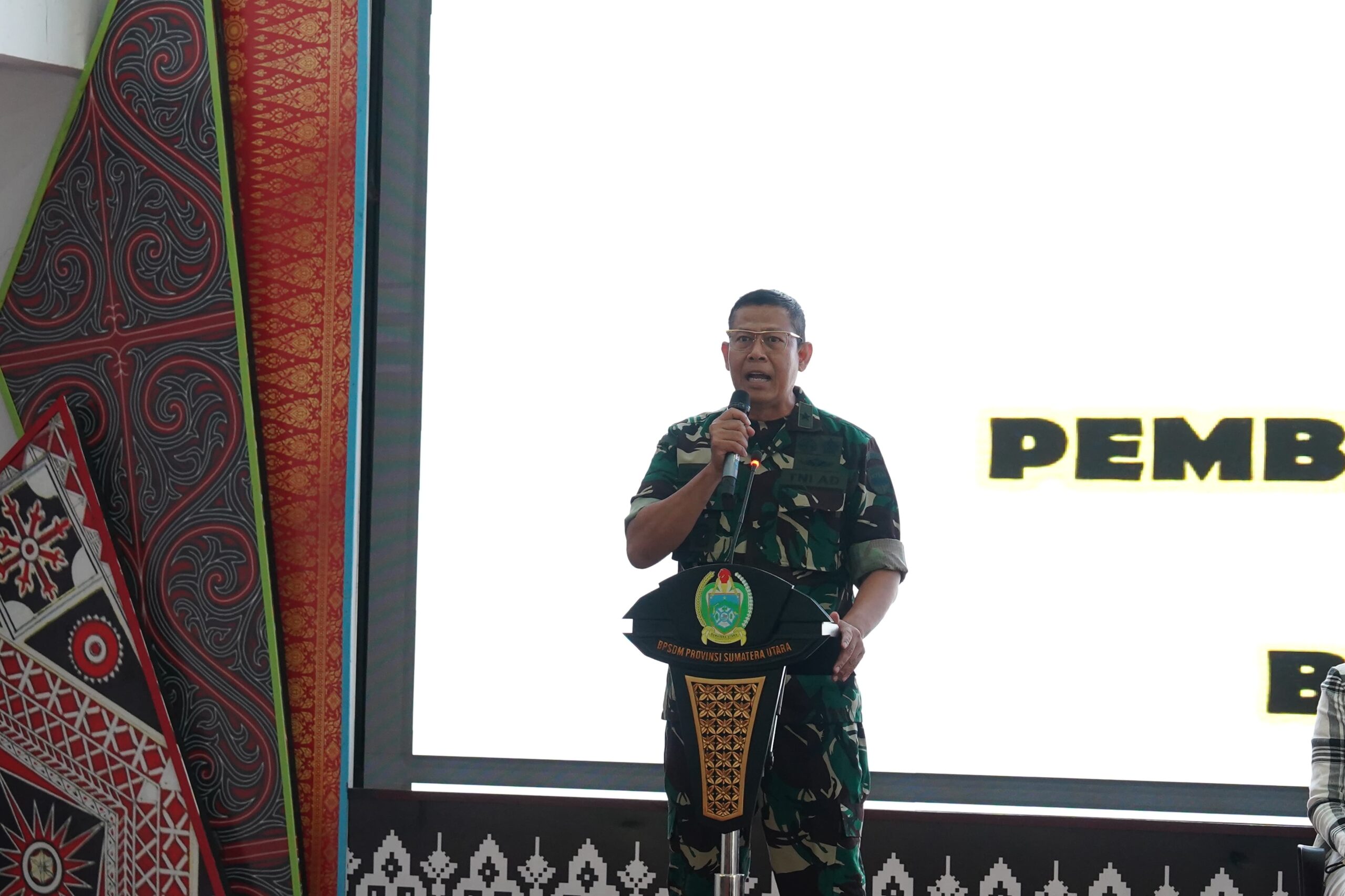 Annanews.co.id || Medan, 11 Oktober 2025 – Kapoksahli Pangdam I/Bukit Barisan Brigjen TNI Dr. David Hatigoran Hutagaol, S.E., M.M., M.Han., menjadi narasumber dalam Seminar Nasional Ketahanan Desa yang digelar Badan Komando Daerah Tenaga Penggerak Ketahanan Desa (BKP TPKD) Provinsi Sumatera Utara di aula BPSDM Sumut, Jalan Ngalengko No.1, Medan, Jumat (10/10/2025). Seminar bertema “Ketahanan Desa untuk Ketahanan Nasional” ini diikuti ratusan mahasiswa dari berbagai perguruan tinggi di Kota Medan.
