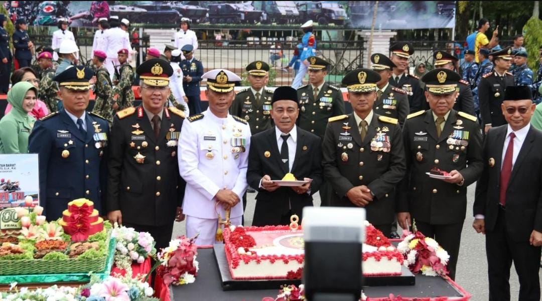 Annanews.co.id || Pontianak, – Kapolda Kalbar Irjen Pol Pipit Rismanto S.I.K., M.H., bersama Wakapolda Brigjen Pol Roma Hutajulu S.I.K., M.Si., menghadiri upacara peringatan HUT ke-80 Tentara Nasional Indonesia (TNI) di Alun-Alun Kapuas, Kota Pontianak, Minggu pagi (5/10).