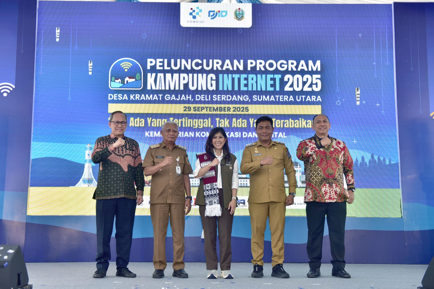 Annanews.co.id || Deli Serdang – Menteri Komunikasi dan Digital (Komdigi) Republik Indonesia Meutya Hafid meresmikan 1.194 titik Kampung Internet yang ada di lima provinsi. Peresmian serentak dipusatkan di Desa Kramat Gajah, Kabupaten Deliserdang, Provinsi Sumatera Utara (Sumut), Senin (29/9/2025).