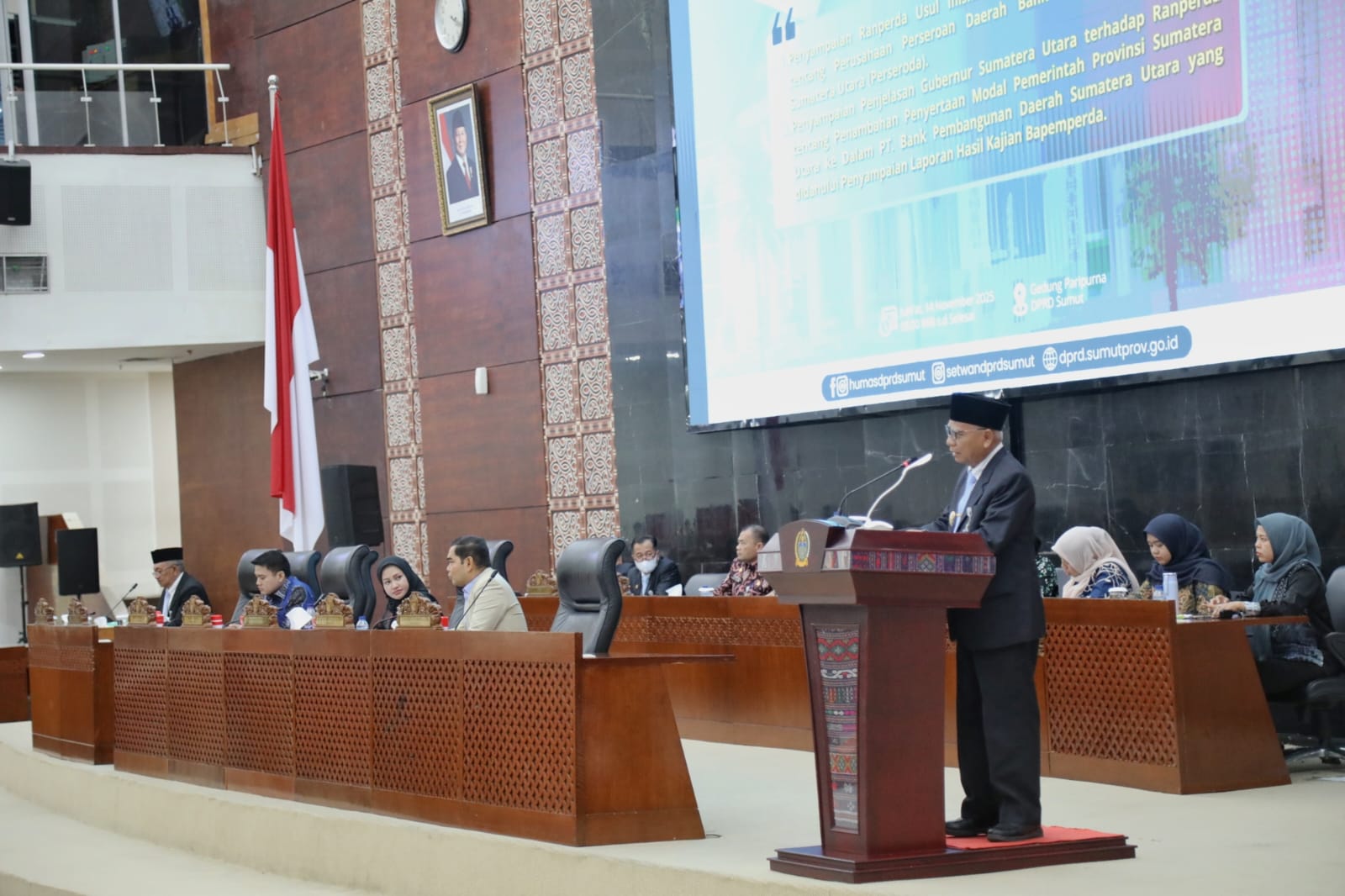Annanews.co.id || Medan – Pemerintah Provinsi (Pemprov) Sumatera Utara (Sumut) mengajukan Rancangan Peraturan Daerah (Ranperda) tentang penambahan penyertaan modal ke PT Bank Pembangunan Daerah Sumatera Utara (Bank Sumut). Ranperda tersebut disampaikan Wakil Gubernur (Wagub) Sumut, Surya, dalam Rapat Paripurna DPRD Sumut yang dipimpin Ketua DPRD Sumut, Erni Ariyanti, di Gedung Paripurna DPRD Sumut, Jalan Imam Bonjol, Medan, Jumat (14/11/2025).