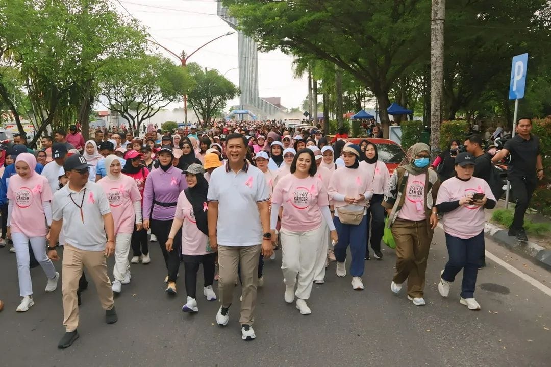 Annanews.co.id || Palangka Raya – Ribuan warga tumpah ruah di Bundaran Besar Talawang, Kota Palangka Raya, Minggu (19/10/2025), untuk mengikuti jalan sehat dalam rangka memperingati Hari Kanker Payudara Sedunia. Kegiatan ini diikuti langsung oleh Kapolda Kalimantan Tengah (Kalteng), Irjen Pol Iwan Kurniawan, S.IK., M.Si., bersama Ketua Bhayangkari Daerah Kalteng, Ny. Maya Iwan Kurniawan.