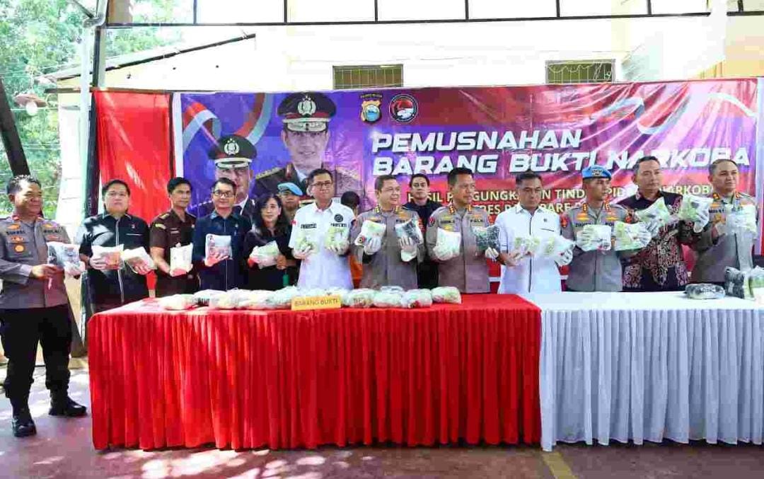 Pemusnahan barang bukti dipimpin langsung oleh Irwasda Polda Sulsel Kombes Pol Ai Afriandi, S.H., S.I.K., M.M., bersama Dirresnarkoba Polda Sulsel Kombes Pol M. Eka Fathurrahman, S.H., S.I.K. Turut hadir Kabid Humas Polda Sulsel Kombes Pol Didik Supranoto, S.I.K., M.H., Kabid Labfor Kombes Pol Wahyu Marsudi, S.Si., M.Si., Kabidpropam Kombes Pol Zulham Effendy, S.I.K., M.H., serta Kapolres Parepare AKBP Indra Waspada Yuda, S.I.K., M.H.