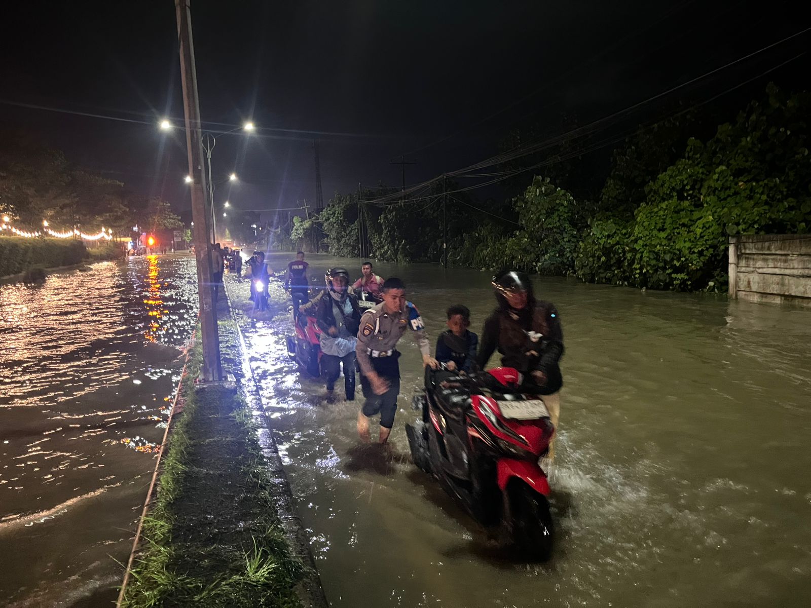 Annanews.co.id || Medan, 12 Oktober 2025 — Personel Ditsamapta Polda Sumut sigap melaksanakan pengaturan lalu lintas dan memberikan himbauan kepada masyarakat menyusul terjadinya banjir di Jalan Sisingamangaraja, tepatnya di depan Restoran Kembang dan Perumahan Taman Rivera, pada Minggu malam (12/10/2025).