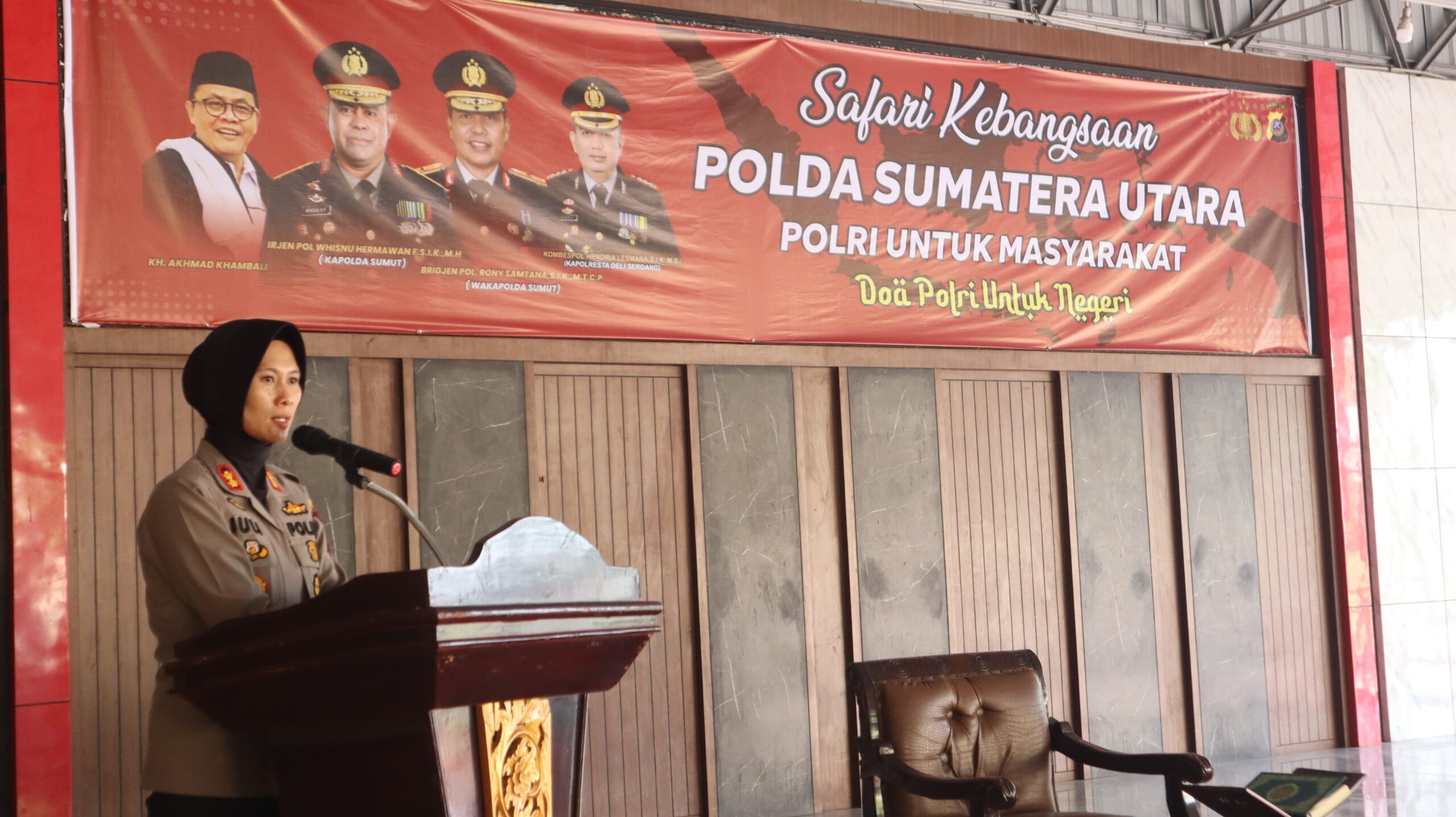 Acara diawali dengan pembacaan ayat suci Al-Qur’an dan sambutan dari Kapolresta Deli Serdang yang disampaikan oleh Wakapolresta Deli Serdang. Dalam sambutannya, AKBP Juliani Prihartini menyampaikan bahwa kegiatan ini merupakan momentum penting bagi Polri dan masyarakat untuk bersama-sama memperkuat rasa kebangsaan dan memohon perlindungan Tuhan agar bangsa Indonesia senantiasa dalam keadaan aman dan damai