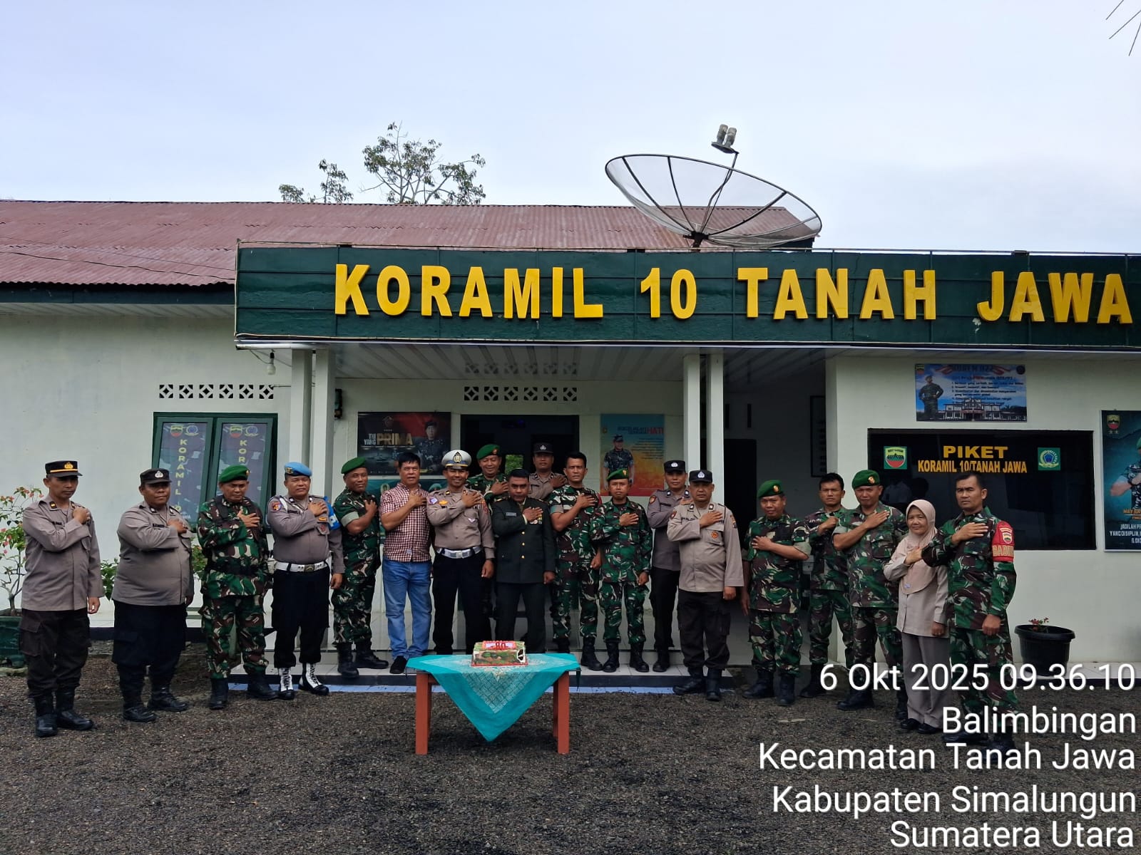 Annanews.co.id || Simalungun – Dalam rangka memperingati Hari Ulang Tahun (HUT) Tentara Nasional Indonesia (TNI) ke-80 tahun 2025, personel Kepolisian Sektor (Polsek) Tanah Jawa memberikan kejutan istimewa kepada rekan-rekan TNI di Markas Komando Rayon Militer (Mako Koramil) 10/Tanah Jawa, Kabupaten Simalungun, Senin (06/10/2025).