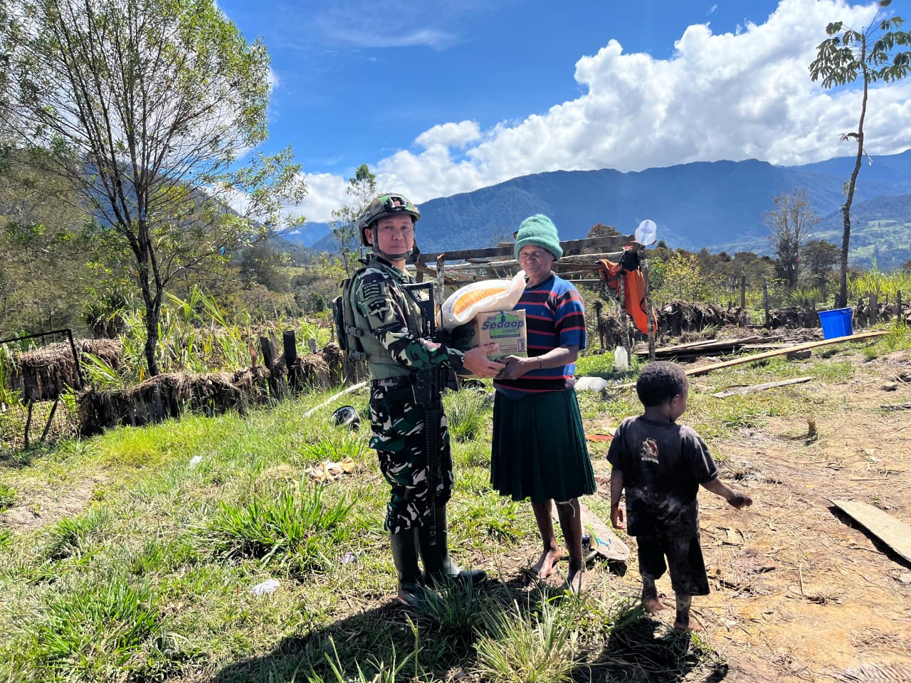 Annanews.co.id || Ilaga, Papua – Di bawah langit Puncak yang teduh dan berhias awan lembut, Satgas Yonif 700/WYC melalui Pos Kout Koper kembali menorehkan kisah tentang pengabdian dan kasih tanpa batas. Dipimpin oleh Letda Ckm Muh. Akbar, Amd. Kep, para prajurit melaksanakan kegiatan Binter Terbatas dengan menggelar Safari Honai — sebuah gerakan sederhana namun penuh makna: membagi beras dan Indomie kepada warga di sekitar Kampung Koper, Distrik Ilaga, Kabupaten Puncak. (25/10/2025).