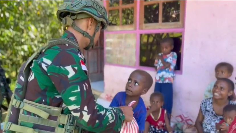 Annanews.co.id || Maybrat, Papua Barat Daya — Bentuk aplikasi kegiatan teritorial dengan masyarakat sekitar, Satgas Pamtas RI-PNG Kewilayahan Yonif 763/SBA Pos Afkrem melaksanakan pembagian logistik berupa sembako yang berisikan beras, telur, mie sedap, dan lain-lainnya kepada masyarakat Kampung Afkrem. (19/10/2025).