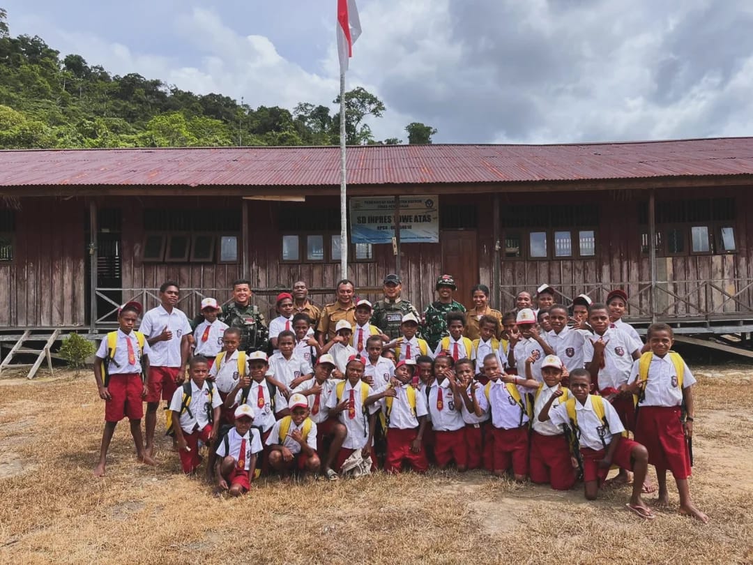 Annanews.co.id || Towe Atas, Papua – Personel Satuan Tugas Infanteri (Satgas Yonif) 121/Macan Kumbang (MK) Pos Towe Atas melaksanakan kunjungan ke Sekolah Dasar Inpres Towe Atas, Distrik Towe, Kabupaten Keerom, sebagai wujud kepedulian terhadap pendidikan anak – anak di wilayah perbatasan, Kamis (13/11/2025).